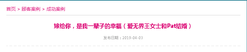 你仔细观察阿里红娘的官网,会发现每一个案例都具体到发布时间,这一点其他机构很难做到。因为阿里红娘的13年是切切实实走出来的13年,阿里红娘的案例都是真真实实发生在会员们身上的故事。