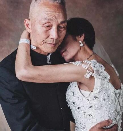 手腕戴着住院带,补拍迟到43年的婚纱照